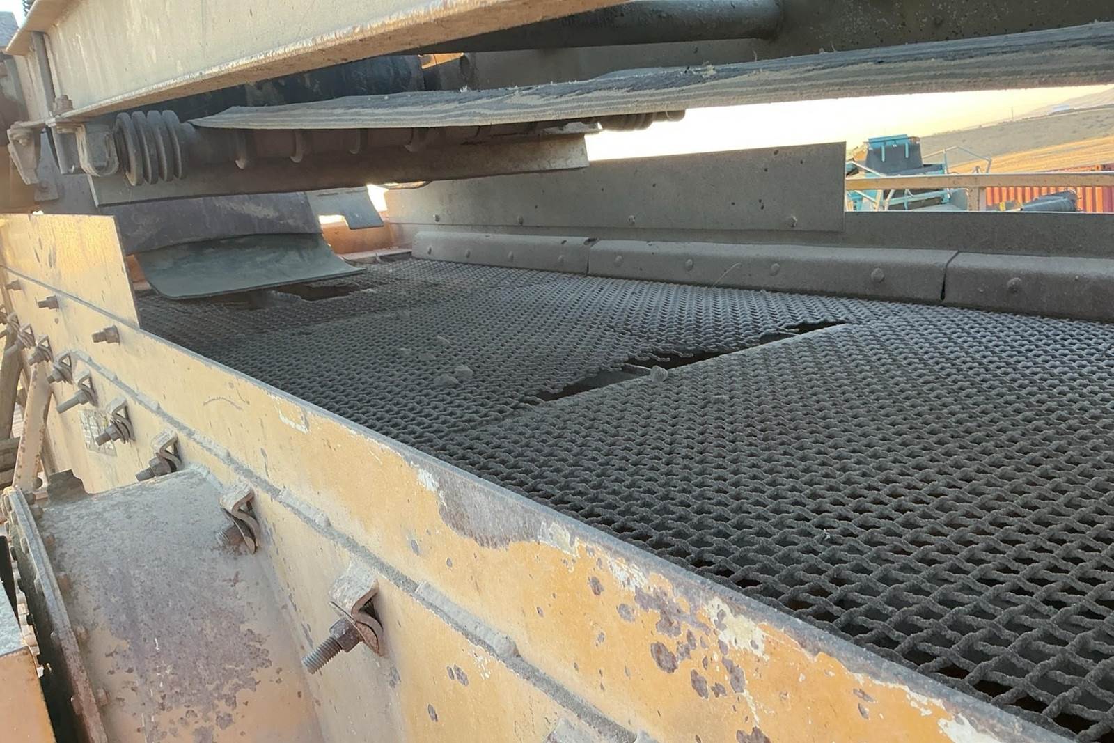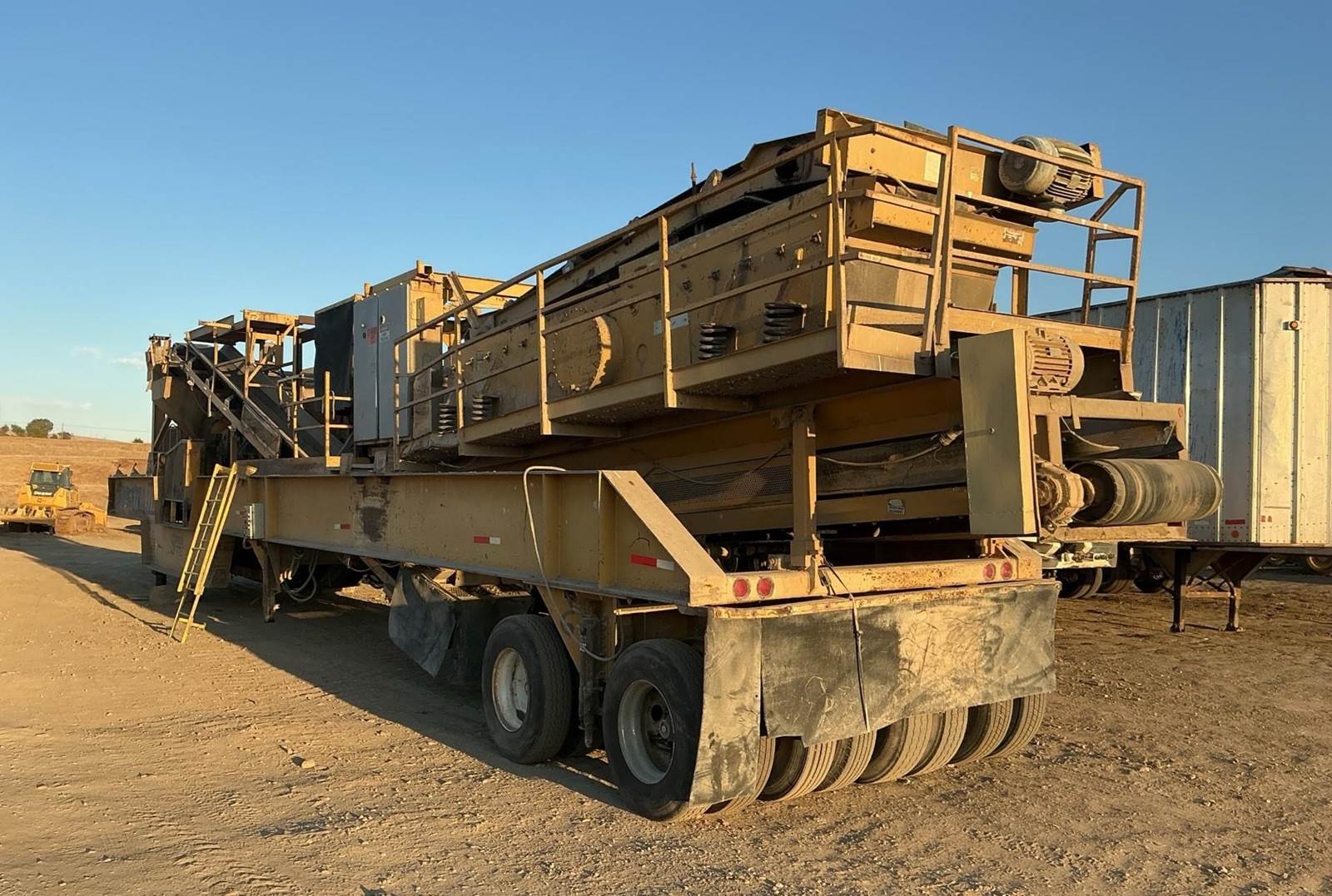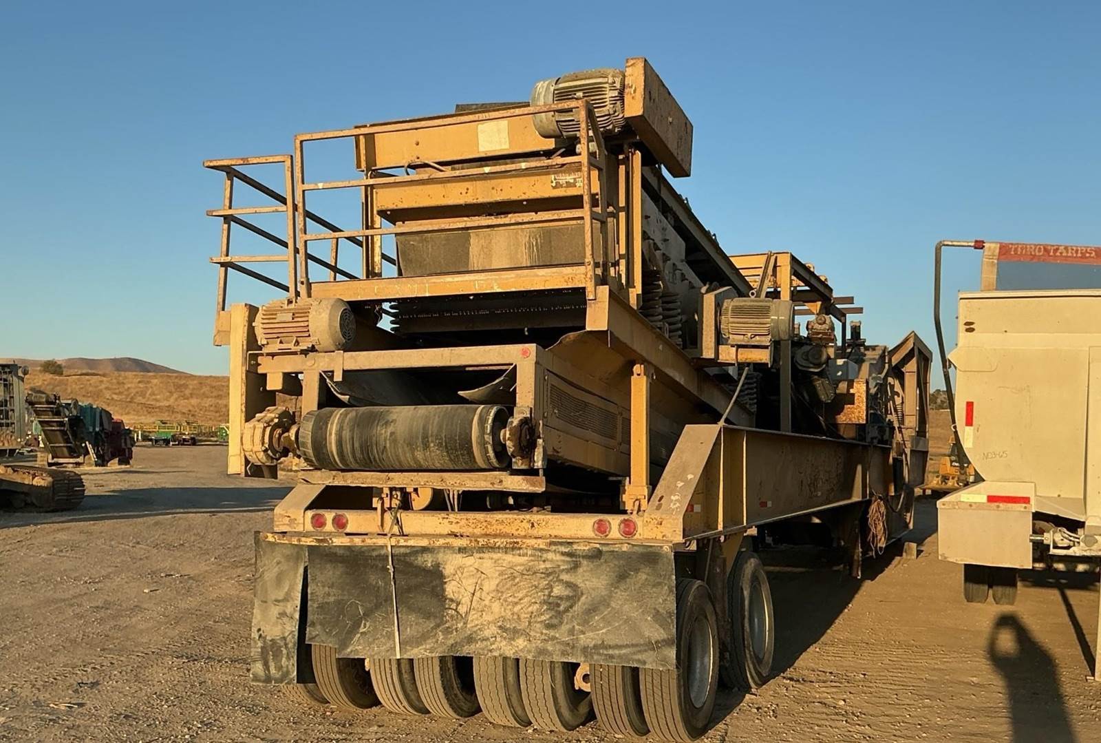 1986 AMI 131551621VR3 Portable Closed Circuit Impactor Crushing Plant. VGF, 1315 Impactor, 5x16 2 Deck screen, Cross Belt Magnet, 32" Return Conveyor, 40" Discharge Conveyor, Switchgear, Self Contained Hydraulic Legs, Good Tires. $149,500
