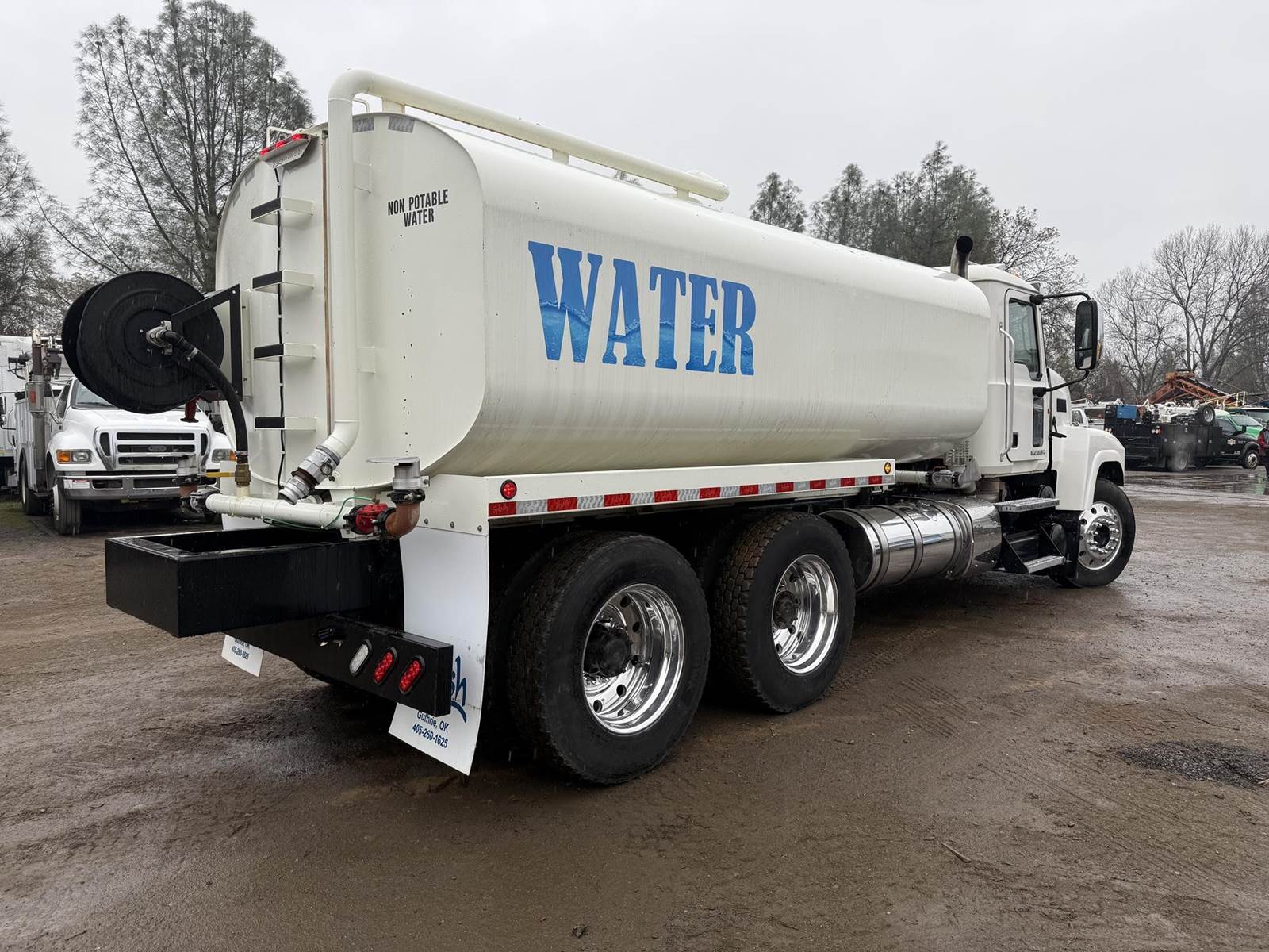 2011 Mack w/ 2023 4000 Gallon water Truck. 505Hp Mack Diesel, Engine Brake, CARB Compliant. New Rebuilt Automatic Transmission. 13.2k Front, 40K Rears, 224" WB. A/R. Front, Side, Rear, Air Sprays. Hose Reel, Self Drafting. 11R 24.5 Rubber. Alum Wheels. Like New 2023 Tank and Spray System In Excellent Condition. A/C, C/C, P/W. Air Ride Cab. Clean. 414K miles. $79,500